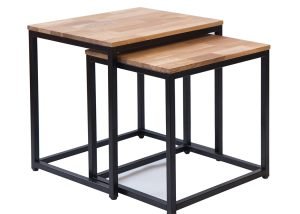 Mirelle Nest Of Tables Solid Oak Black Metal Frame