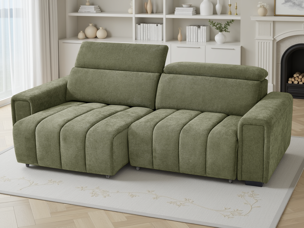 The Molly is all about low-profile style and high-end comfort. Featuring independent power sliding seats and adjustable headrests, it lets you lounge your way at the touch of a button. Available in Beige, Green and Grey, its modern vertical tufting makes it a standout piece for any living room.