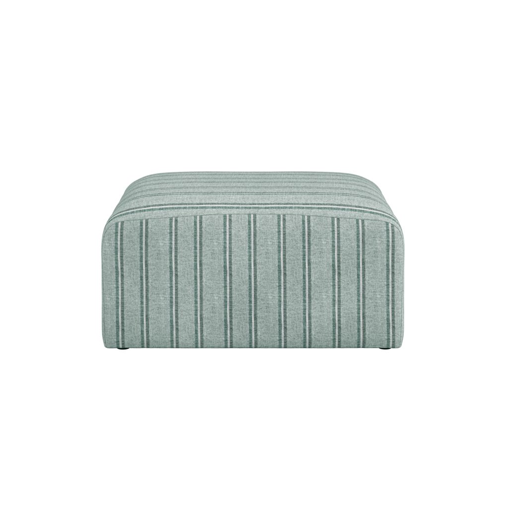 The Ryder pouffe features curved corners and slightly textured upholstery in striped cotton-blend fabric. It offers comfortable seating with extra filling and can be styled as an accent piece in any room.